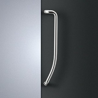 | カーブが特徴デザインのシルバー丸パイプハンドル。 建築用ドアハンドル [ネオイズム] ■特 長 ●1セット(内外扉1枚分)です。 《施 工》 取付ビス M8 取付穴 φ10mm / ガラスドア取付時 φ16mm 《サイズ》 L600mm 《取付ピッチ》 P573mm ■製品仕様 ●ステンレス ヘアライン ■注 意 ●適応ドア フレーム・フラッシュドア(ガラスドアにも取付可能) ※送料無料です。 ※ご注文の際には、ご使用予定の扉厚をお知らせくださいますようお願いします。 ■目的機能 ● ■詳細図