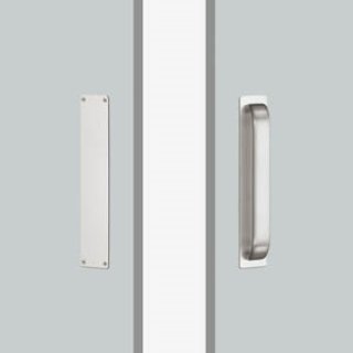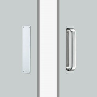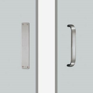 | 板タイプと丸パイプのセットハンドル。 建築用ドアハンドル [ネオイズム] ■特 長 ●1セット(内外扉1枚分)です。 《施 工》 取付ビス M6 (プレート M4) 取付穴 φ8mm 取付については取付説明をご覧ください。 《サイズ》 L330mm 《取付ピッチ》 ■製品仕様 ●ステンレス ミラー ■注 意 ●適応ドア フラッシュドア ※送料無料です。 ※ご注文の際には、ご使用予定の扉厚をお知らせくださいますようお願いします。 ■特 記 ●プレート裏側には厚さ4mmのベースプレート(樹脂)が付きます。 ■詳細図