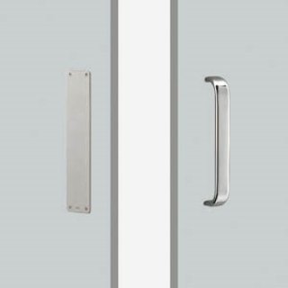 | 板タイプと丸パイプのセットハンドル。 建築用ドアハンドル [ネオイズム] ■特 長 ●1セット(内外扉1枚分)です。 《施 工》 取付ビス M6 (プレート M4) 取付穴 φ8mm 取付については取付説明をご覧ください。 《サイズ》 L330mm 《取付ピッチ》 ■製品仕様 ●ステンレス ヘアライン ■注 意 ●適応ドア フラッシュドア ※送料無料です。 ※ご注文の際には、ご使用予定の扉厚をお知らせくださいますようお願いします。 ■特 記 ●プレート裏側には厚さ4mmのベースプレート(樹脂)が付きます。 ■詳細図