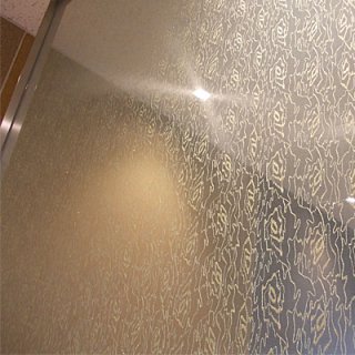 絹(シルクファブリック)を二枚のガラス板に挟み込んだ合わせガラスです。